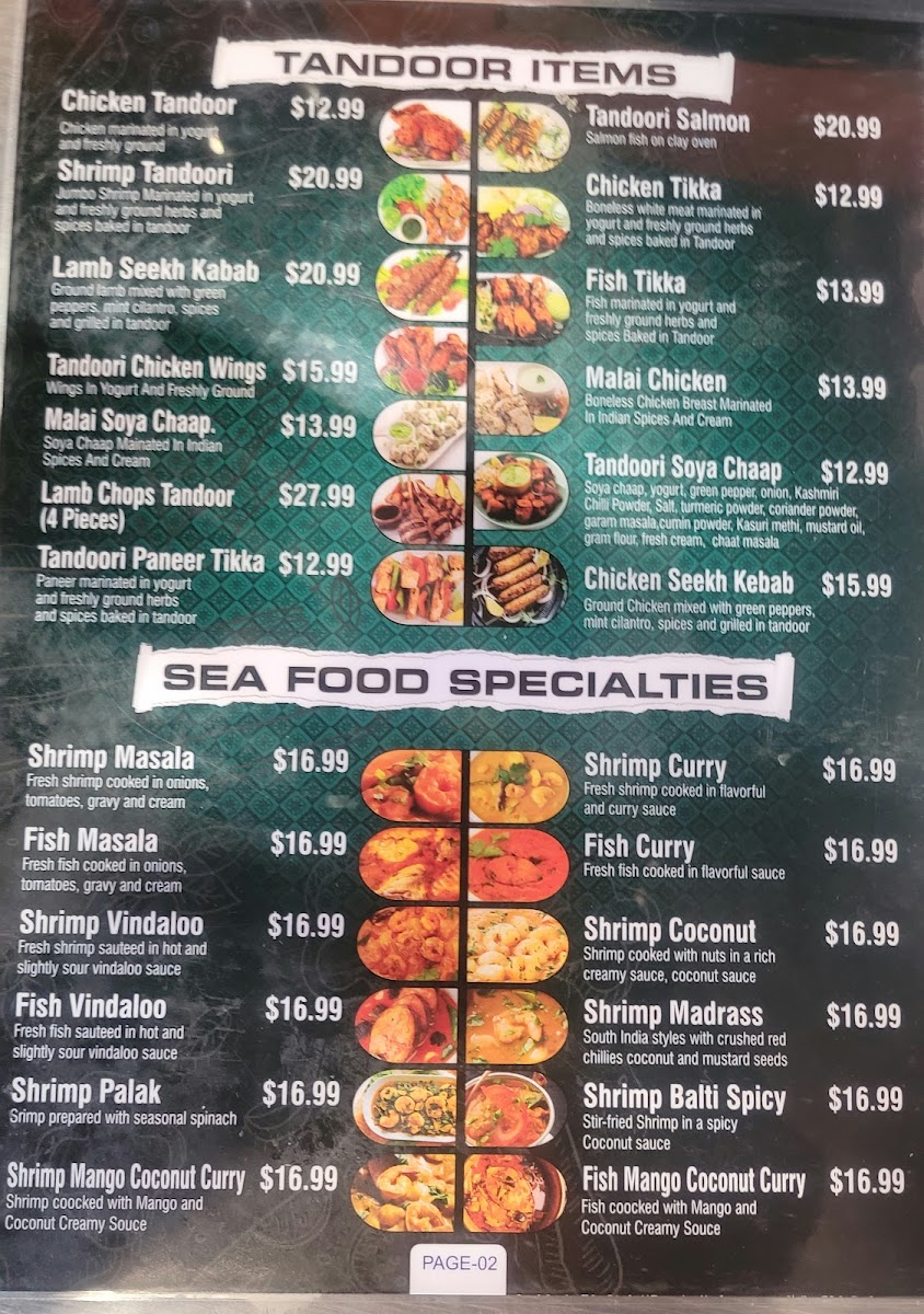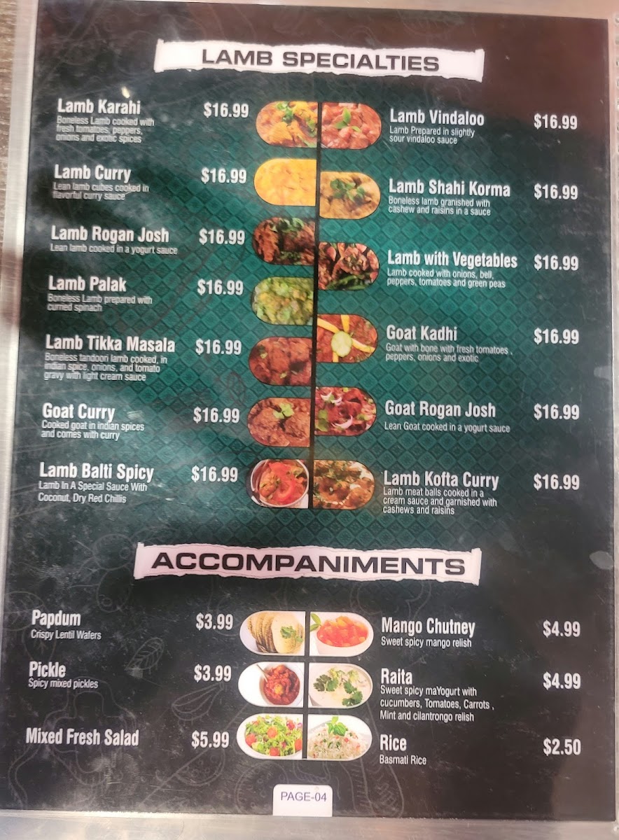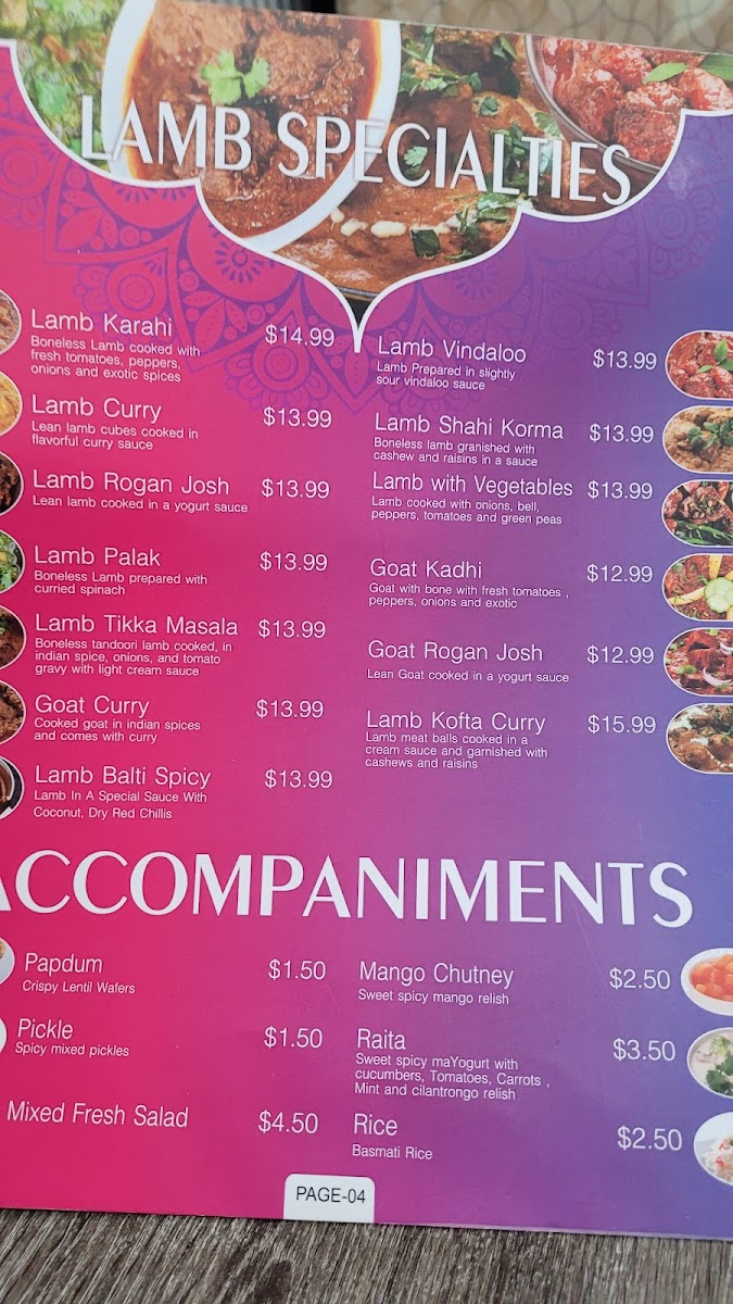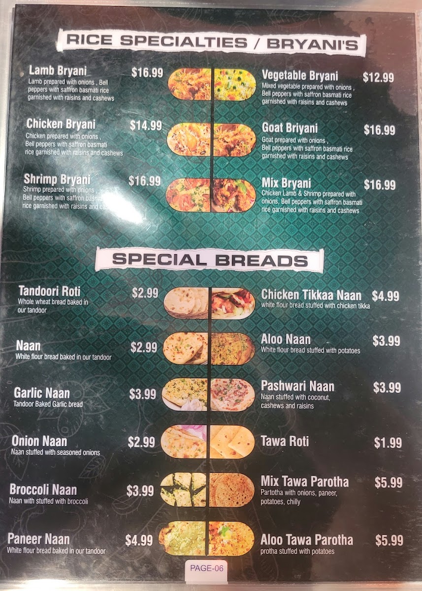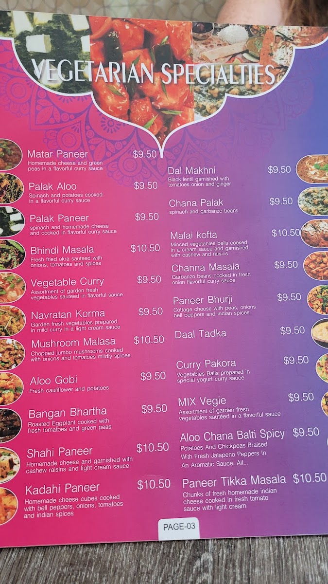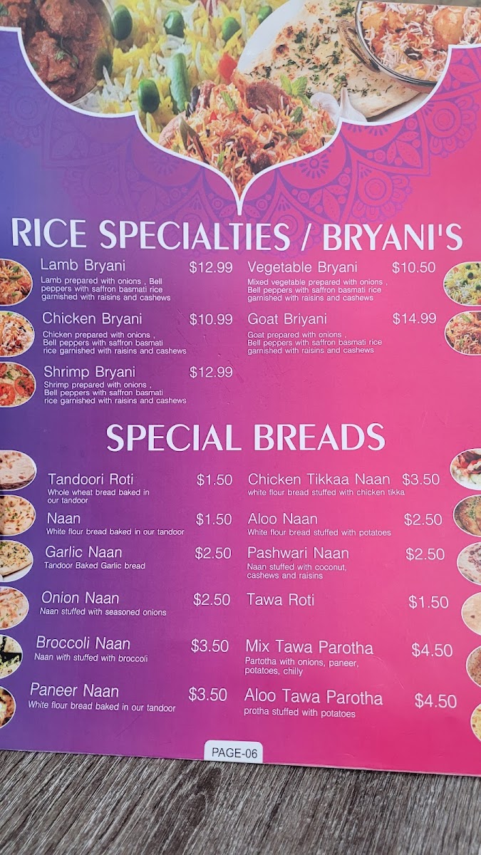 Guests can expect a variety of hearty options like Chicken Biryani, Tandoori Chicken, and Malai Kofta, alongside beloved vegetarian choices such as Paneer Pakora, Aloo Tikki Chaat, and the generous Veg Thali. These dishes pair effortlessly with warm, soft Naan bread or flavorful sides like Dal Makhani and Jeera Rice, making them ideal whether you're stopping by for a casual lunch, a quiet dinner, or sharing a combo meal with family or friends.